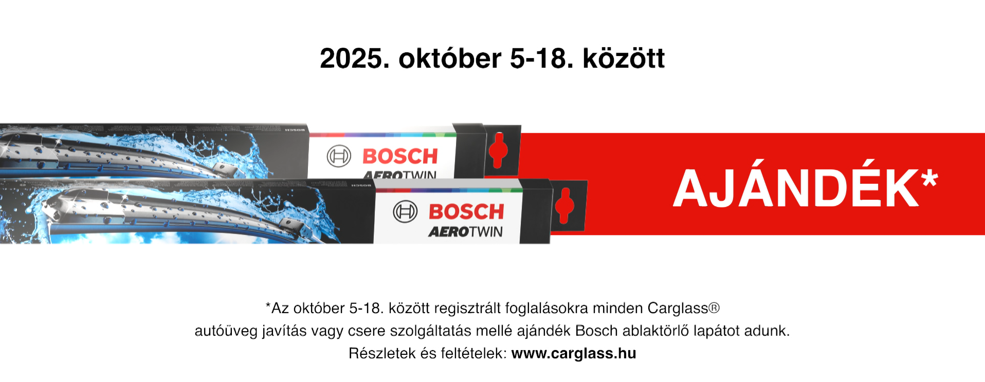 Október 5–18. között minden szélvédőjavítás vagy -csere mellé ajándék prémium BOSCH ablaktörlő lapátot kapsz! 🌧️✨